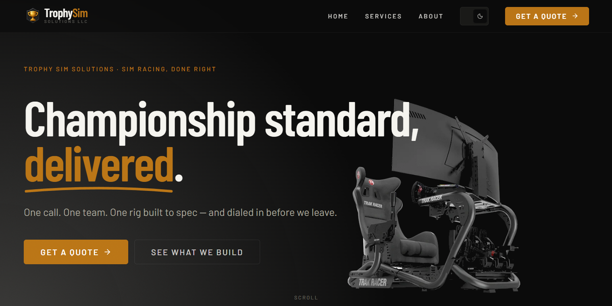 Marketing site for Trophy Sim Solutions LLC — a company I co-founded to design, source, install, and calibrate professional sim racing systems for teams and training facilities. Built as a content-driven site where a single TypeScript source feeds both rendered pages and JSON-LD schema to prevent Google-penalized drift between what a page says and what its schema claims.